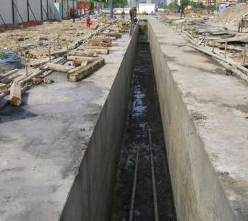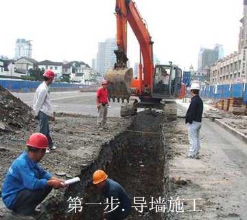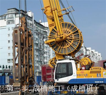 在地面上,利用一些種挖槽機(jī)械,借助于泥漿的護(hù)壁作用,在地下挖出窄而深的基槽,并在其內(nèi)澆注適當(dāng)?shù)牟牧隙纬傻囊坏谰哂蟹罎B、擋土和承重功能的連續(xù)的地下墻體。